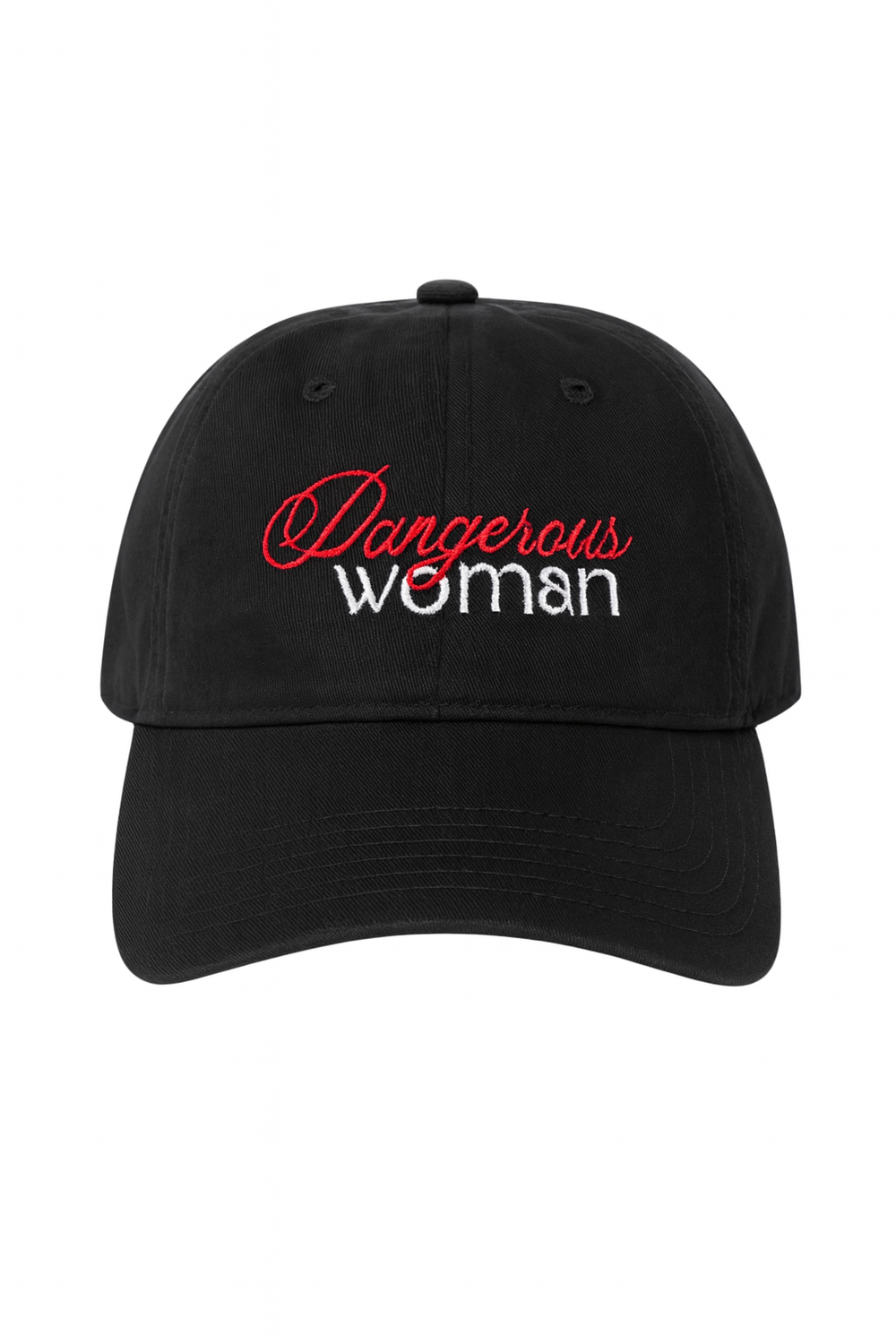 Bold. Confident. Untamed. The Dangerous Woman Hat is built for women who carry strength with style. Featuring a relaxed, unstructured fit and low-profile silhouette, this cap delivers everyday comfort without losing that unmistakable edge. Details Unstructured snapback with a classic low-profile shape Soft, washed cotton for a broken-in feel from day one Contrasting embroidery — bold red “Dangerous” script paired with clean white “woman” lettering Adjustable clasp closure for a custom, secure fit Curved bill for a timeless, athletic look Lightweight and breathable, perfect for gym days, errands, or everyday wear Why You’ll Love It This hat isn’t just an accessory — it’s a statement. It’s for the woman who stands firm, walks with purpose, and doesn’t apologize for being powerful. Wear it proudly. Wear it boldly. Be a Dangerous Woman.